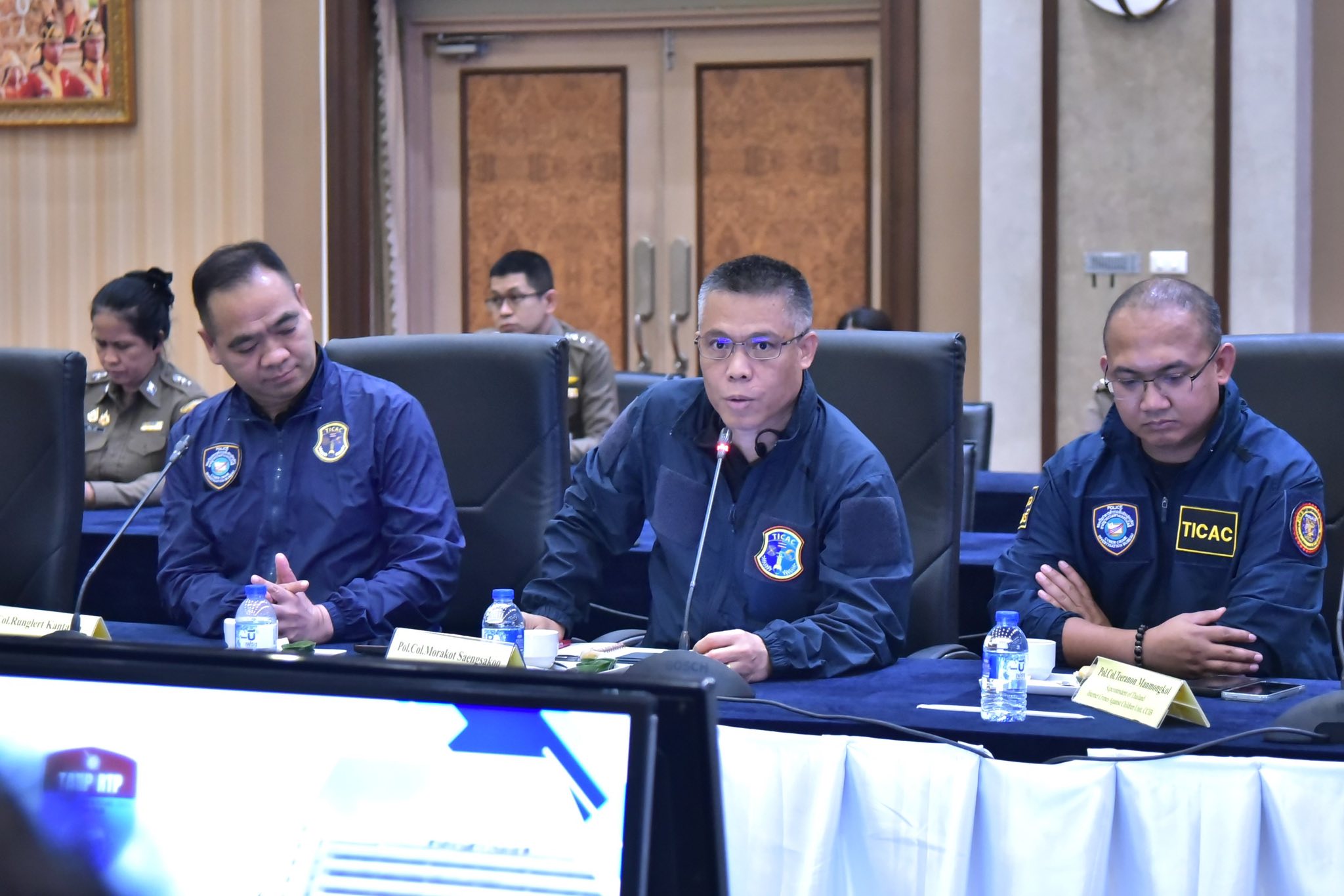 พล.ต.อ.ธัชชัย ปิตะนีละบุตร จตช./ผอ.ศตคม.ตร. ให้การต้อนรับคณะเจ้าหน้าที่รัฐสภาสหรัฐอเมริกา ที่ขอเข้าพบเพื่อหารือข้อราชการและรับฟังบรรยายผลการดำเนินการของ ศตคม.ตร. และชุดปราบปรามการล่วงละเมิดทางเพศต่อเด็กทางอินเทอร์เน็ต ณ ห้องประชุมศรียานนท์ ชั้น 2 อาคาร 1 ตร. จากนั้นได้ดูกิจการ ณ ศูนย์บริหารเหตุการณ์ แก๊งคอลเซ็นเตอร์และค้ามนุษย์นานาชาติ ชั้น 7 อาคารศูนย์ฝึกอบรมพัฒนาบุคลากรและสวัสดิการ สำนักงานตำรวจแห่งชาติ