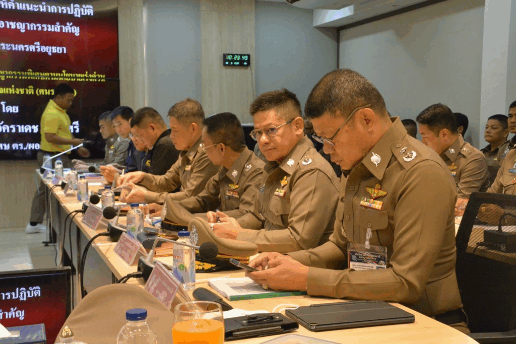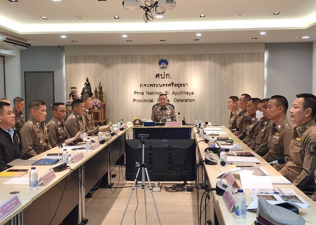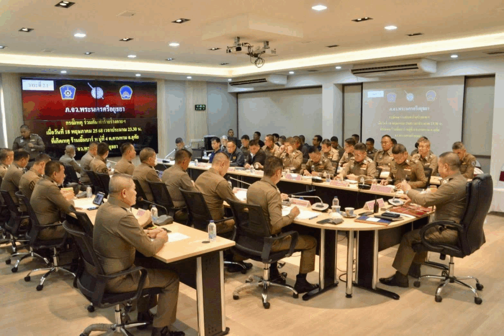 วันนี้ (29 พฤษภาคม 2568) เวลา 10.00 น. พล.ต.อ.อัคราเดช พิมลศรี ที่ปรึกษาพิเศษ สำนักงานตำรวจแห่งชาติ ในฐานะผู้อำนวยการศูนย์ปราบปรามอาชญากรรมพิเศษตามนโยบายเร่งด่วน สำนักงานตำรวจแห่งชาติ (ศนรด.ตร.) เป็นประธานการประชุมมอบนโยบายการปฏิบัติหน้าที่ราชการ และติดตามความคืบหน้าเหตุกลุ่มวัยรุ่นบุกรุกทำร้ายนักท่องเที่ยวในสถานบริการในจังหวัดพระนครศรีอยุธยา โดยมี พล.ต.ท.สุรพล เปรมบุตร ผู้บัญชาการตำรวจภูธรภาค 1 (ผบช.ภ.1) , พล.ต.ต.โชคชัย งามวงศ์ รอง ผบช.ภ.1 , พล.ต.ต.นฤนาท พุทไธสง ผู้บังคับการตำรวจภูธรจังหวัดพระนครศรีอยุธยา พร้อมด้วยข้าราชการตำรวจในสังกัดตำรวจภูธรจังหวัดพระนครศรีอยุธยา , กองบังคับการสืบสวนสอบสวน ตำรวจภูธรภาค 1 และกองบัญชาการตำรวจสอบสวนกลาง ร่วมประชุม ณ ห้องประชุมนันทโชติ ตำรวจภูธรจังหวัดพระนครศรีอยุธยา