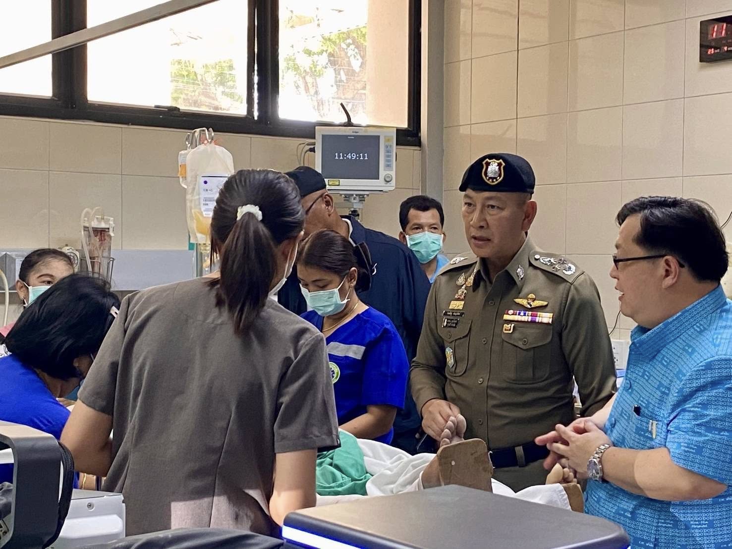 จากนั้น ผบ.ตร. และคณะ ได้เดินทางไป เพื่อเยี่ยมอาการ “ร้อยตำรวจเอก จตุรงค์ วัฒนไพรสาณฑ์” นักบินที่รอดชีวิต ซึ่งรักษาตัวที่โรงพยาบาลหัวหิน ล่าสุดมีอาการกระดูกใบหน้าหัก เจาะปอดใส่ท่อระบายของเสียออกจากทรวงอก ไม่พบว่าได้รับการกระทบกระเทือนทางสมองแต่อย่างใด ล่าสุดได้ประสานกับทางโรงพยาบาลตำรวจ หากต้องมีการเคลื่อนย้ายไปรักษา ยืนยันดูแลรักษาอย่างเต็มที่