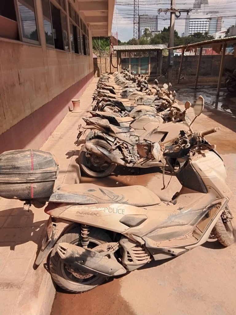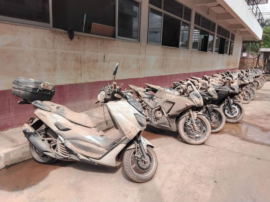 พล.ต.ต.ศิริวัฒน์ ฯ กล่าวว่า ภายหลังน้ำลด ผบ.ตร.ได้รับรายงานการสำรวจความเสียหายทรัพย์สินราชการ พบว่าในส่วนของ สภ.หาดใหญ่ ที่น้ำท่วมสูงกว่า 3 เมตร จนอาคารที่ทำการชั้น 1 ได้รับความเสียหายทั้งหมด ยังพบว่ารถจักรยานยนต์สายตรวจได้รับความเสียหายจมน้ำเสียหาย 94 คัน ทำให้รถจักรยานยนต์ที่ใช้การได้ไม่เพียงพอกับภารกิจโดยเฉพาะงานสายตรวจ ซึ่งขณะนี้จำเป็นต้องเพิ่มวงรอบ เพิ่มความถี่ และเพิ่มกำลังตำรวจเข้าไปตามชุมชนทุกซอยทุกถนนเพื่อเข้าไปดูแลความปลอดภัยในชีวิตและทรัพย์สิน สร้างความอุ่นใจให้ประชาชน ดังนั้น ผบ.ตร.จึงสั่งการให้ สกบ. สำรวจรถจักรยานยนต์ที่มีการจัดซื้อไว้แล้วแต่ยังรอกระบวนการส่งไปยังหน่วยต่าง ๆ ดำเนินการจัดส่งด่วนจากกรุงเทพมหานครไปยัง จ.สงขลา ให้ตำรวจภูธรจังหวัดสงขลา 340 คัน ส่งให้สถานีตำรวจภูธรในสังกัด 31 แห่ง โดยเฉพาะ สภ.หาดใหญ่ 100 คัน และ สภ.อื่น ๆ เช่น สภ.คอหงส์ 35 คัน, สภ.เมืองสงขลา 25 คัน, สภ.สะเดา 15 คัน ฯลฯ เนื่องจากมีความจำเป็นต้องใช้เพื่อรองรับภารกิจดูแลความปลอดภัยประชาชน