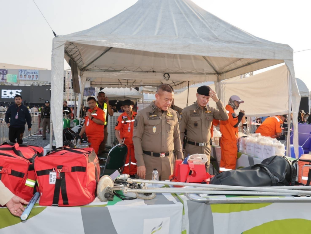 ช่องทางเข้าออก บริเวณสถานที่จัดงาน ใช้กำลังพลคัดกรอง บันทึกภาพจาก CCTV จำนวน 32 ตัว, กล้องตำรวจ 4 ตัว และการตรวจสอบข้อมูลบุคคลจาก application crimes online