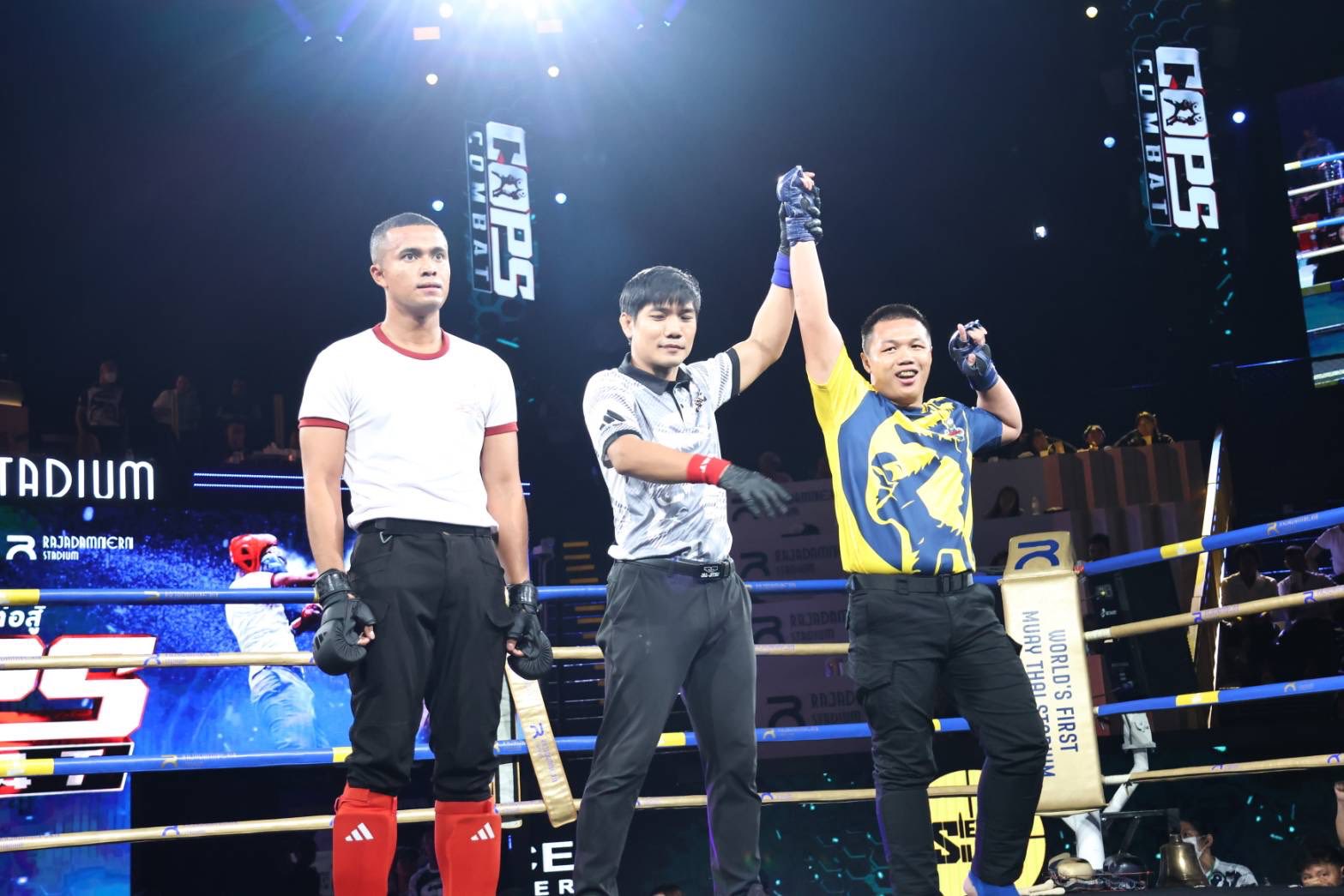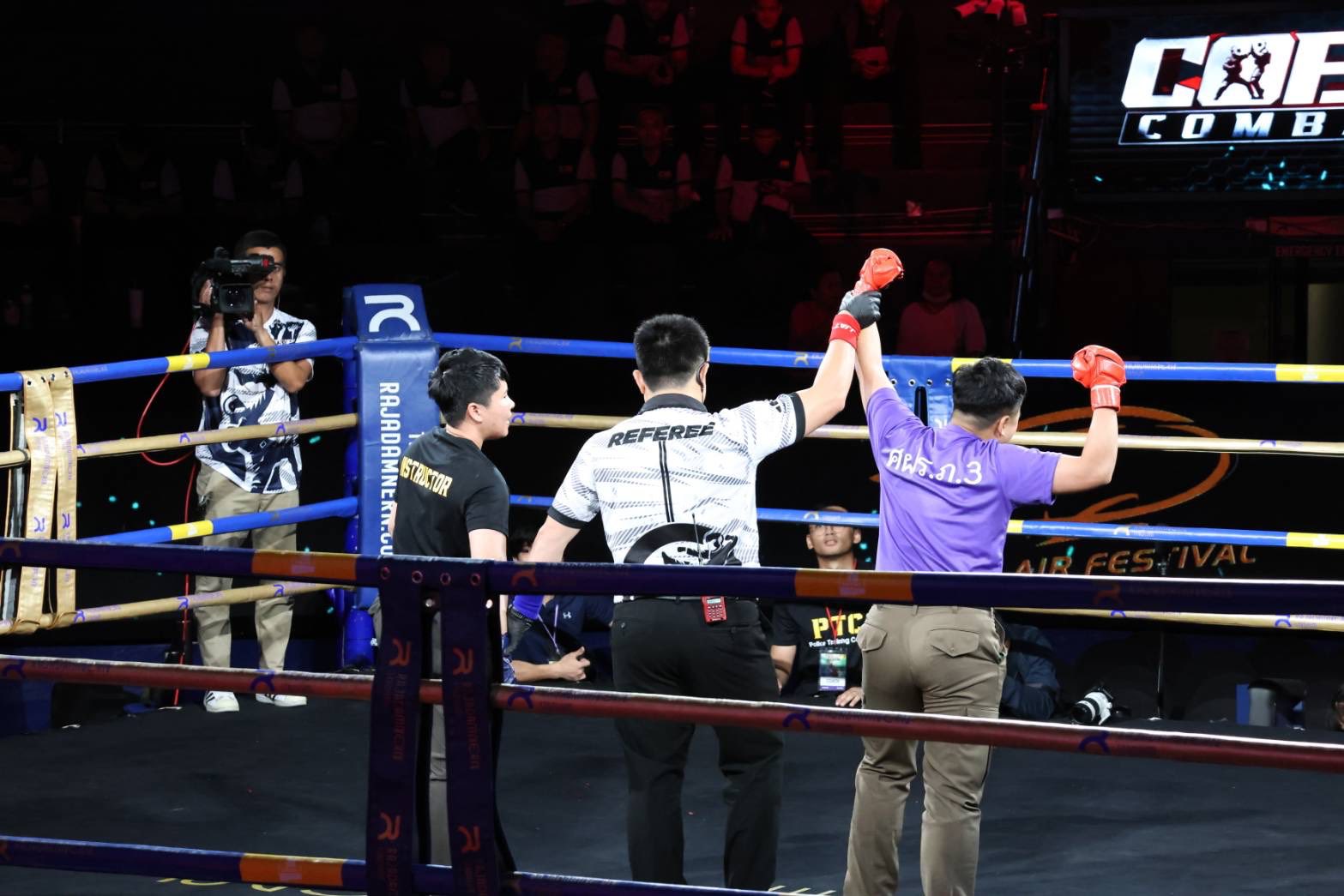 ผู้บัญชาการตำรวจแห่งชาติ กล่าวว่า Cops Combat เป็นกีฬาที่มีการผสมผสานระหว่างมวยไทยและทักษะการต่อสู้ป้องกันตัวจากประเทศอื่น น้องๆ ตำรวจที่มาเป็นนักกีฬา สามารถนำไปปรับใช้กับการปฏิบัติหน้าที่ต่อสู้ป้องกันตัว ระหว่างปฏิบัติหน้าที่อาจต้องใช้ความรู้จาก Cops Combat มาใช้ในการป้องกันตนเอง จากผู้คลุ้มคลั่ง หรือจากอาชญากร ที่อาจจะทำร้ายเจ้าหน้าที่ถึงชีวิตได้ ดังนั้น กีฬาต่อสู้ป้องกันตัวที่จัดขึ้นโดยกองบัญชาการตำรวจสอบสวนกลาง มีความจำเป็นกับทุกคน ซึ่งการจัดการแข่งขัน Cops Combat ปีนี้ พบว่ามีนักกีฬาจำนวน 14 กลุ่ม มากกว่า 14 กองบัญชาการ ที่ร่วมส่งนักกีฬาเข้าร่วมแข่งขัน และมีนักกีฬาเข้าร่วมจำนวนมากทั้งหญิงและชาย จึงอยากให้ข้าราชการตำรวจและนักกีฬาได้มีการพัฒนาตัวเอง พัฒนากำลังกายและทักษะเป็นประจำและสม่ำเสมอ เพราะตำรวจเรามีความจำเป็นต้องใช้ในภารกิจตำรวจกับชีวิตประจำวัน ขอบคุณนักกีฬาทุกคนที่เข้ามาร่วมการแข่งขัน และคาดหวังว่าในปีต่อๆ ไป จะมีการพัฒนาในการต่อสู่กับฝ่ายตรงข้ามอย่างมีประสิทธิภาพ