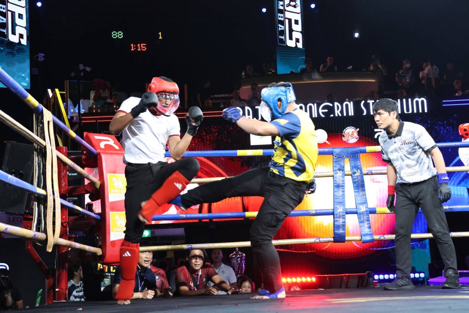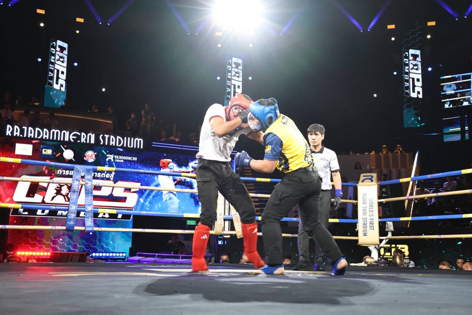 วันนี้ (6 พฤษภาคม 2568) เวลา 13.00 น. พล.ต.อ.กิตติ์รัฐ พันธุ์เพ็ชร์ ผู้บัญชาการตำรวจแห่งชาติ เป็นประธานพิธีเปิดการแข่งขันกีฬาต่อสู้และป้องกันตัว Cops Combat ประจำปี 2568 ของกองบัญชาการตำรวจสอบสวนกลาง โดยมี พล.ต.ท.จิรภพ ภูริเดช ผู้บัญชาการตำรวจสอบสวนกลาง ให้การต้อนรับ ณ สนามมวยราชดำเนิน ซึ่งการแข่งขันจัดขึ้นระหว่างวันที่ 5 – 6 พฤษภาคม 2568 โดยในวันนี้เป็นรอบชิงชนะเลิศ