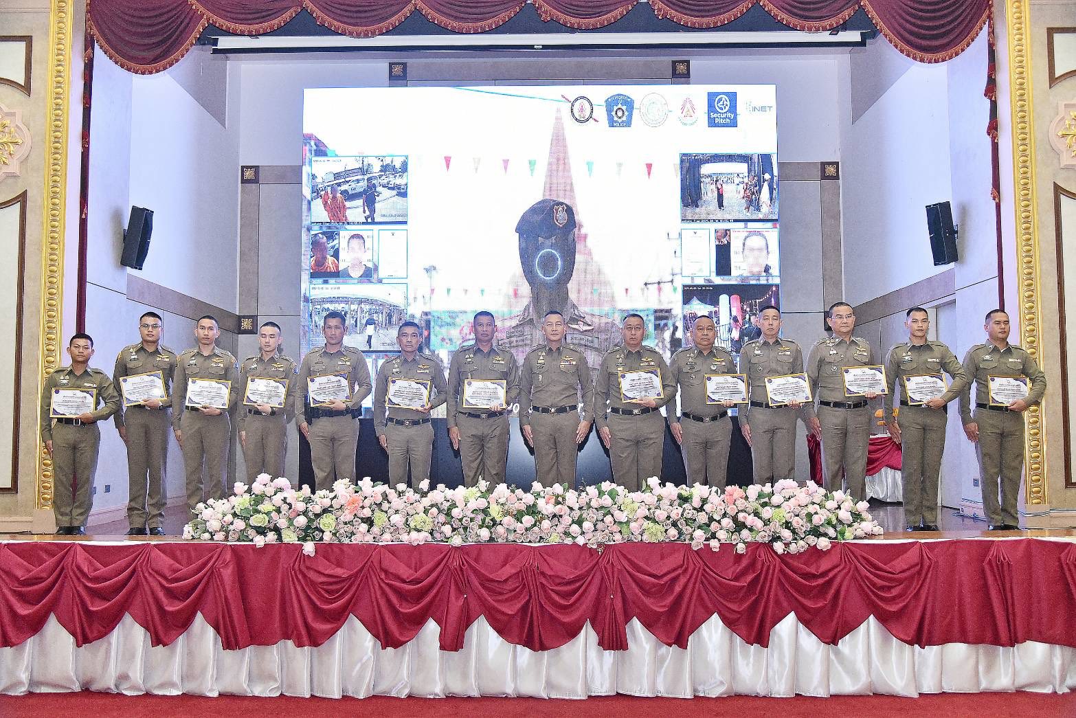 พิธีมอบรางวัลให้กับโครงการยกระดับมาตรฐานงานสืบสวน ป้องกันปราบปรามและความปลอดภัยสาธารณะ ด้วยเทคโนโลยีระบบหุ่นตำรวจอัจฉริยะ “AI Police Cyborg 1.0” หรือ พ.ต.อ.นครปฐม ปลอดภัย หุ่นกล้อง AI อัจฉริยะที่สามารถตรวจจับสภาพการจราจร ตรวจสอบใบหน้าบุคคลเชื่อมข้อมูลกับฐานข้อมูลหมายจับ รวมถึงการทำงานเพิ่มประสิทธิภาพของตำรวจ เพื่อเป็นการแบ่งเบาภาระเจ้าหน้าที่ ซึ่งเป็นไปตามนโยบายของผู้บัญชาการตำรวจแห่งชาติให้พัฒนางานป้องกันปราบปรามอาชญากรรม โดยการแสวงหาความร่วมมือจากองค์กรปกครองส่วนท้องถิ่นและเอกชน โดยตำรวจภูธรภาค 7 และตำรวจสอบสวนกลาง จึงได้ร่วมกับหลายภาคส่วน พัฒนาระบบหุ่นตำรวจอัจฉริยะ “AI Police Cyborg 1.0” ซึ่งเป็นระบบ Face Recognition เพื่อพิสูจน์ทราบบุคคลตามหมายจับจากฐานข้อมูลของกองบัญชาการตำรวจสอบสวนกลาง ซึ่งจนถึงปัจจุบันสามารถจับกุมบุคคลตามหมายจับได้ 20 หมาย นับเป็นอีกก้าวสำคัญของการใช้เทคโนโลยีเพื่อเพิ่มประสิทธิภาพงานป้องกันปราบปรามอาชญากรรมอย่างเป็นรูปธรรม ทั้งนี้ มีข้าราชการตำรวจในสังกัดตำรวจภูธรภาค 7 และกองบัญชาการตำรวจสอบสวนกลาง รับมอบรางวัลจำนวน 13 นาย นำโดย พล.ต.ท.นัยวัฒน์ ผะเดิมชิต ผู้บัญชาการตำรวจภูธรภาค 7 และ พล.ต.ท.จิรภพ ภูริเดช ผู้บัญชาการตำรวจสอบสวนกลาง