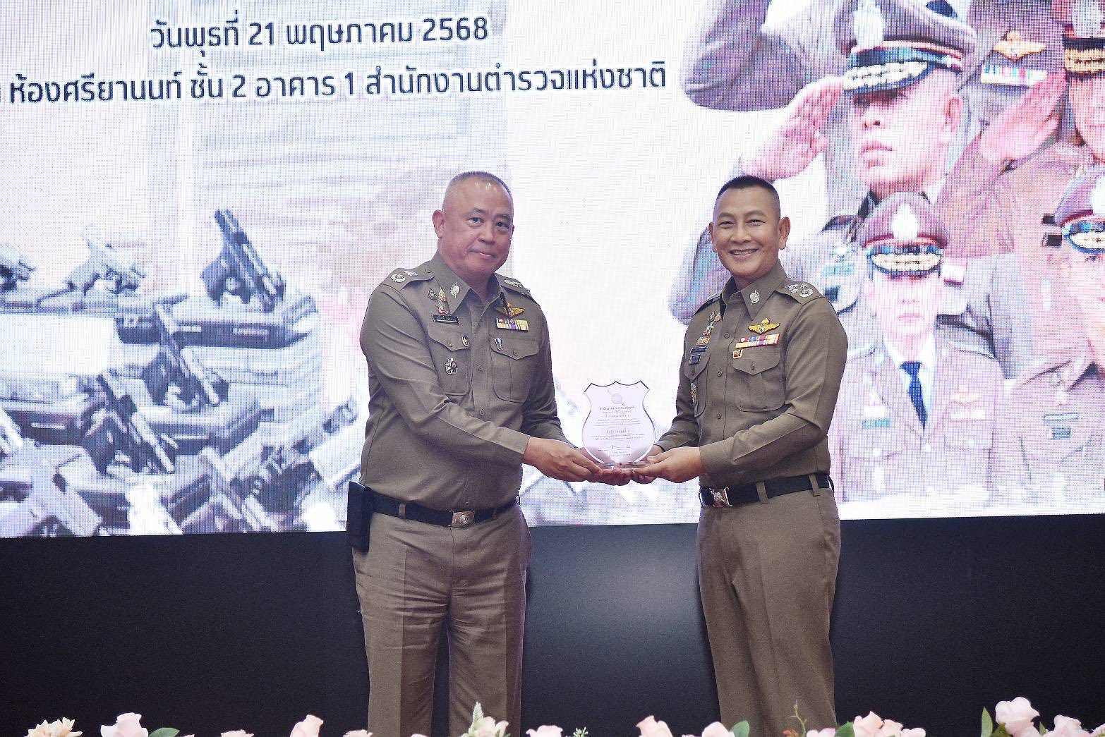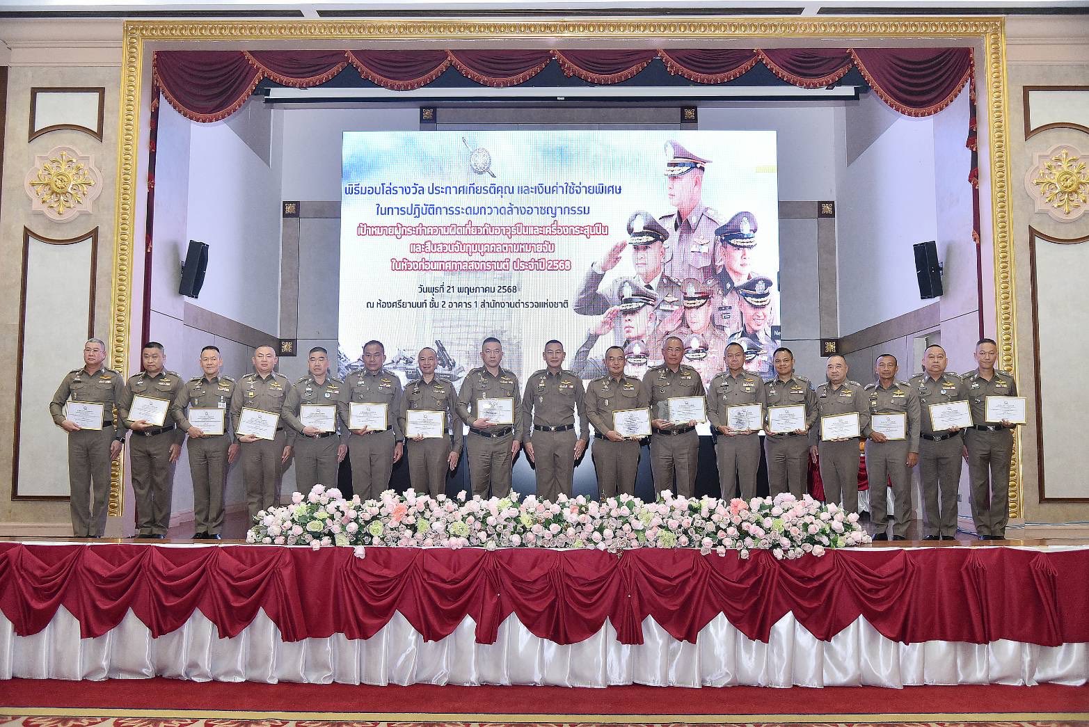 พิธีมอบรางวัลให้แก่หน่วยงานที่มีผลการปฏิบัติการระดมกวาดล้างอาชญากรรม เป้าหมายผู้กระทำความผิดเกี่ยวกับอาวุธปืนและเครื่องกระสุนปื่น และสืบสวนจับกุมบุคคลตามหมายจับดีเด่น ประจำปีงบประมาณ พ.ศ.2568 เพื่อเป็นขวัญกำลังใจแก่ผู้ปฏิบัติหน้าที่งานสืบสวน