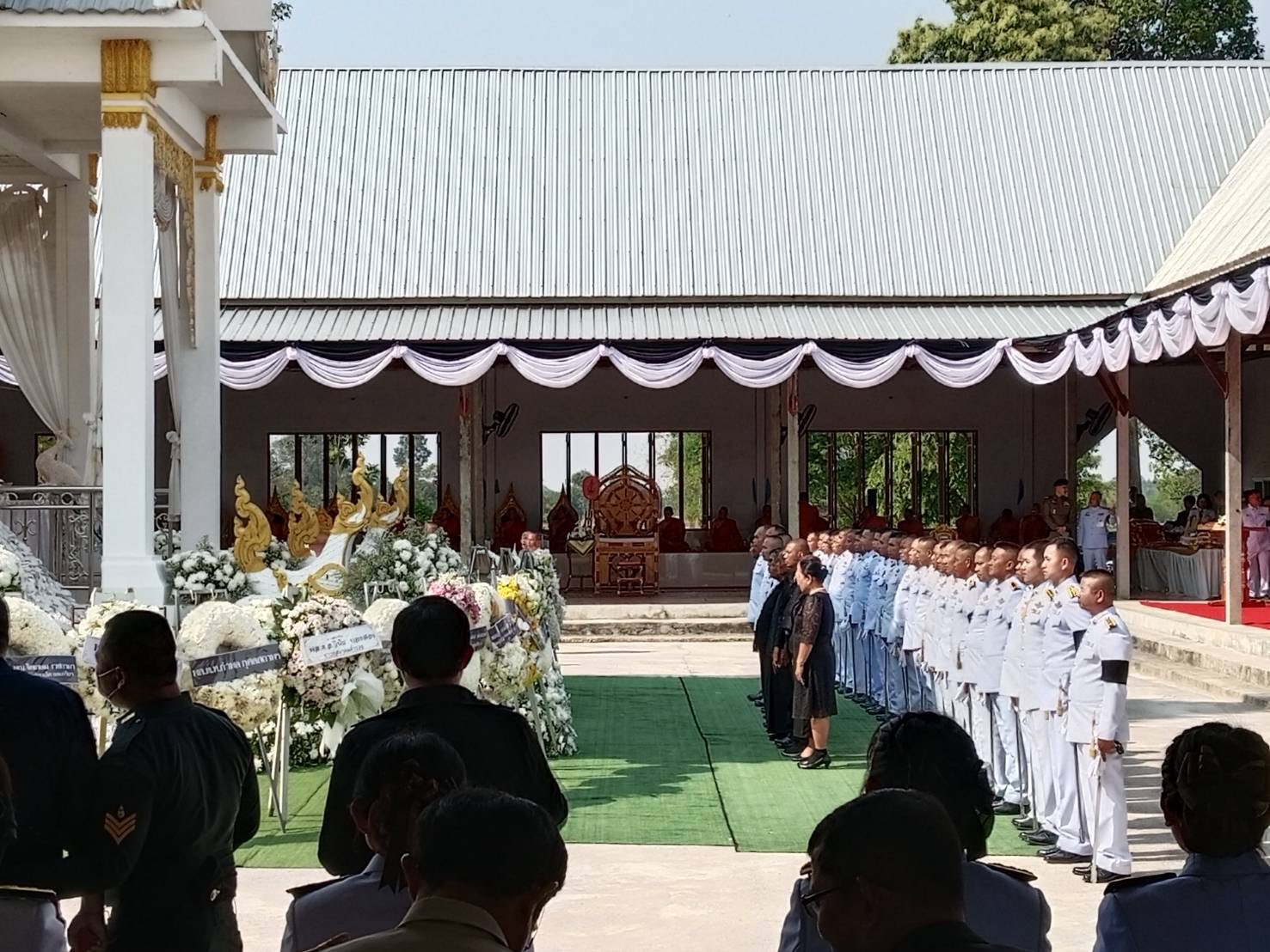 โดยมีนายชัชวาลย์ เบญจสิริวงศ์ ผู้ว่าราชการจังหวัดร้อยเอ็ด เป็นผู้แทนอัญเชิญไฟหลวงพระราชทาน ซึ่งมี พล.ต.อ. ธนายุตม์ วุฒิจรัสธารงค์ ที่ปรึกษาพิเศษ ตร.เป็นประธาน พร้อมด้วย พล.ต.ต.ภูมิวิทย์ เวชกามา ผบก.ภ.จว.ร้อยเอ็ด, ผู้กำกับ ทุก สภ.ในจังหวัดร้อยเอ็ด และบรรดาญาติและครอบครัว รวมถึงกลุ่มเพื่อนข้าราชการตำรวจเข้าร่วมพิธี ท่ามกลางบรรยากาศเป็นไปด้วยความโศกเศร้า