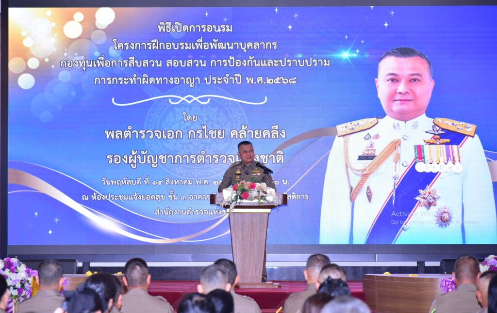 พล.ต.อ.กรไชย คล้ายคลึง รองผู้บัญชาการตำรวจแห่งชาติ (รอง ผบ.ตร.) เป็นประธานพิธีเปิดโครงการฝึกอบรมเพื่อพัฒนาบุคลากร กองทุนเพื่อการสืบสวน สอบสวน การป้องกันและปราบปรามการกระทำผิดทางอาญา ประจำปี พ.ศ.2568 ณ ห้องแจ้งยอดสุข อาคารศูนย์ฝึกอบรมพัฒนาบุคลากรและสวัสดิการ สำนักงานตำรวจแห่งชาติ