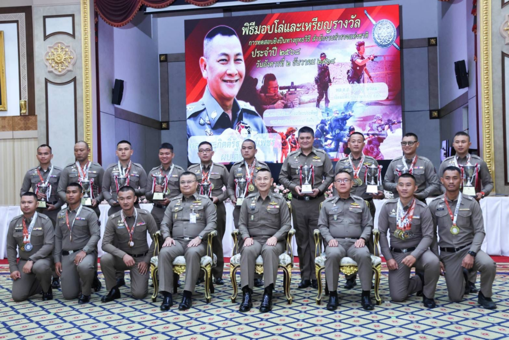 สำนักงานตำรวจแห่งชาติมอบโล่และเหรียญรางวัลการทดสอบยิงปืนทางยุทธวิธี ประจำปี 2568 เน้นฝึกฝนต่อเนื่องเพื่อความชำนาญการใช้อาวุธปืนในการป้องกันปราบปรามอาชญากรรม