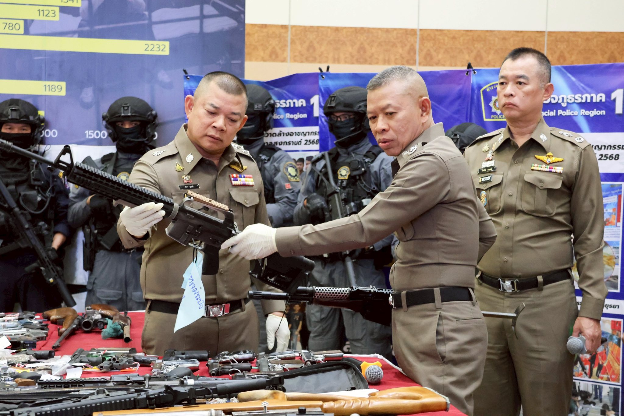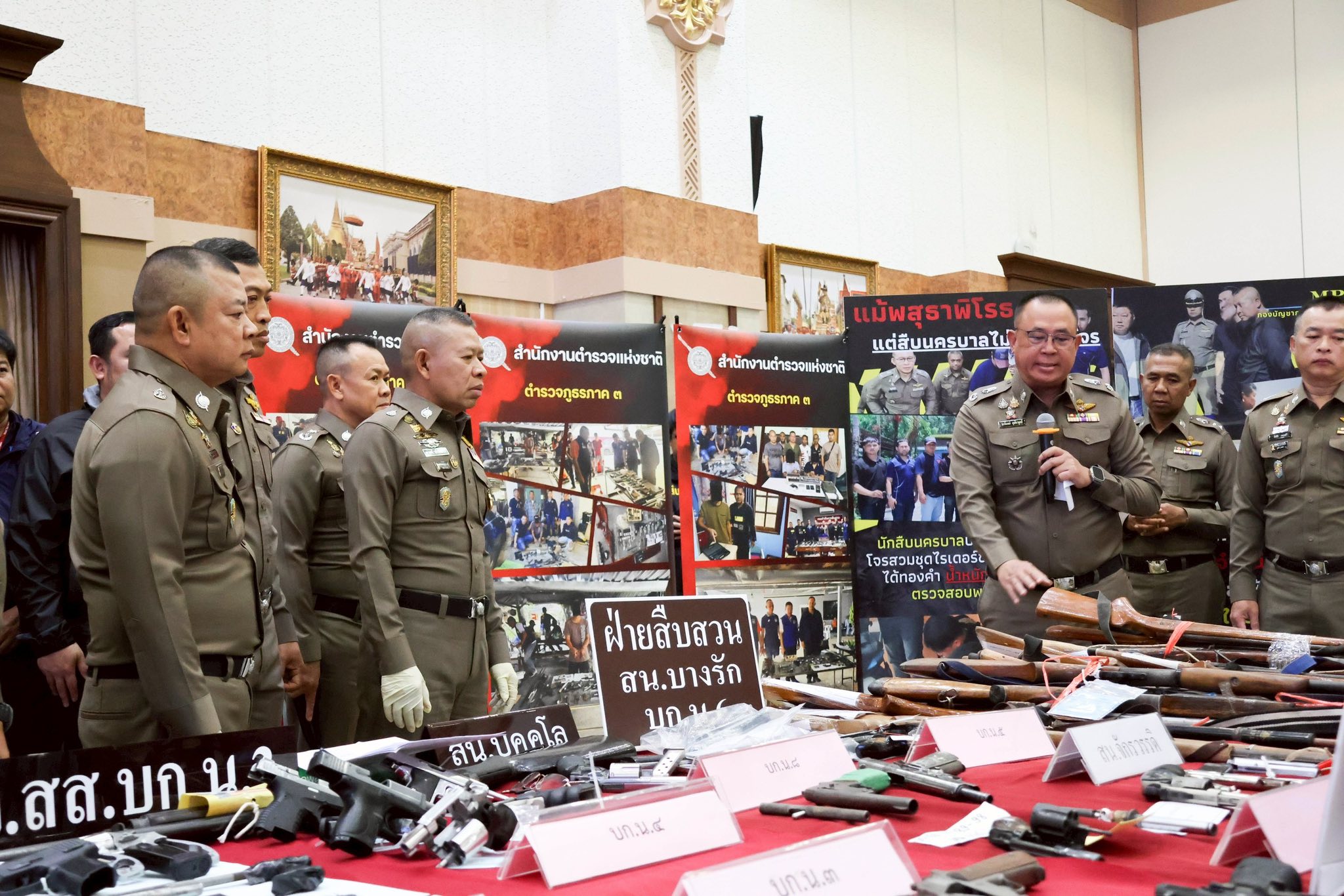 สำนักงานตำรวจแห่งชาติแถลงผลปฏิบัติการระดมกวาดล้างอาชญากรรม เป้าหมายผู้กระทำความผิดเกี่ยวกับ อาวุธปืน เครื่องกระสุนปืน และสืบสวนจับกุมบุคคลตามหมายจับ ในห้วงก่อนเทศกาลสงกรานต์ประจำปี 2568