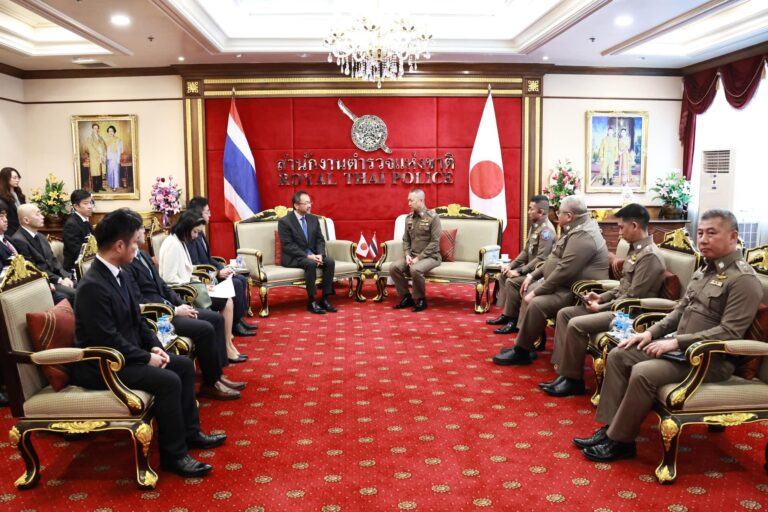 ผู้แทนสถานเอกอัครราชทูตญี่ปุ่น และสำนักงานตำรวจแห่งชาติญี่ปุ่น เข้าพบจเรตำรวจแห่งชาติ ขอบคุณตำรวจไทยที่จับกุมบุคคลตามหมายจับ และช่วยเหลือเหยื่อแก๊งคอลเซ็นเตอร์ชาวญี่ปุ่น พร้อมมอบเกียรติบัตรแก่คณะทำงาน