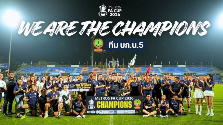 การแข่งขันฟุตบอลภายในกองบังคับการตำรวจนครบาล 5 รายการ Metro 5 FA Cup 2026 รอบชิงชนะเลิศ ทีม บก.น.5 เอาชนะ ทีม สน.ทองหล่อ ด้วยสกอร์ 9:1 คว้าแชมป์ไปครองอย่างยิ่งใหญ่