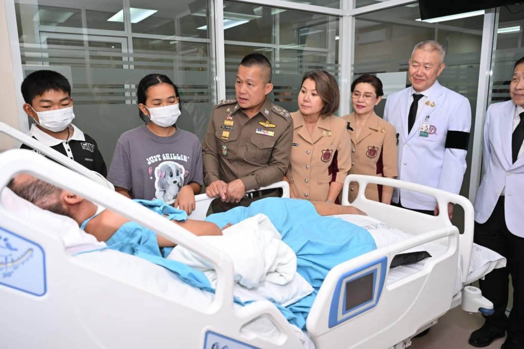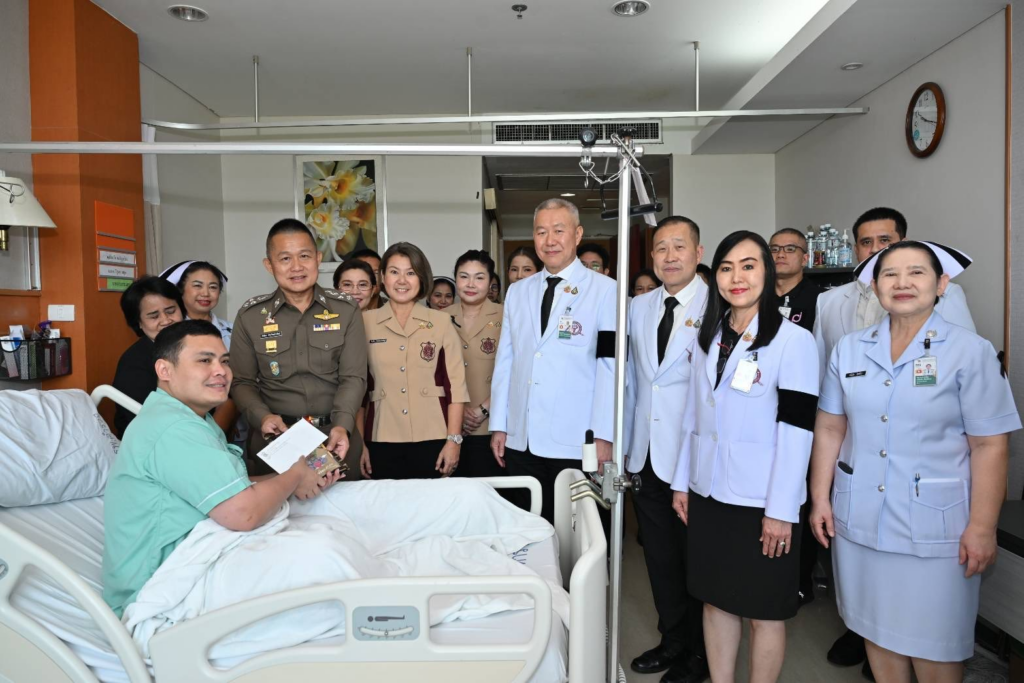 วันที่ 9 เมษายน 2569 พล.ต.อ.อิทธิพล อัจฉริยะประดิษฐ์ จเรตำรวจแห่งชาติ พร้อมด้วย คุณวีรปริยา อัจฉริยะประดิษฐ์ อุปนายกสมาคมแม่บ้านตำรวจ เยี่ยมให้กำลังใจข้าราชการตำรวจที่ได้รับบาดเจ็บจากการปฏิบัติหน้าที่ ที่รักษาตัว ณ โรงพยาบาลตำรวจ โดยมี พล.ต.ท.ไพบูลย์ เจียมอนุกูลกิจ นายแพทย์ (สบ8) รักษาราชการแทนนายแพทย์ใหญ่ (สบ8) โรงพยาบาลตำรวจ พร้อมด้วย และผู้แทนสมาคมแม่บ้านตำรวจ ร่วมเยี่ยม ณ ชั้น 11 อาคารมหาภูมิพลราชานุสรณ์ 88 พรรษา (มภร.) โรงพยาบาลตำรวจv
