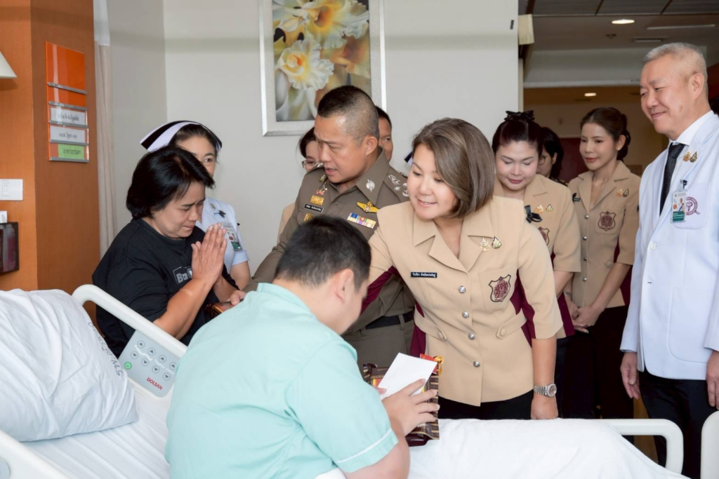 จเรตำรวจแห่งชาติ พร้อมอุปนายกสมาคมแม่บ้านตำรวจ เยี่ยมให้กำลังใจพร้อมมอบเงินและสิ่งของช่วยเหลือข้าราชการตำรวจที่ได้รับบาดเจ็บจากการปฏิบัติหน้าที่