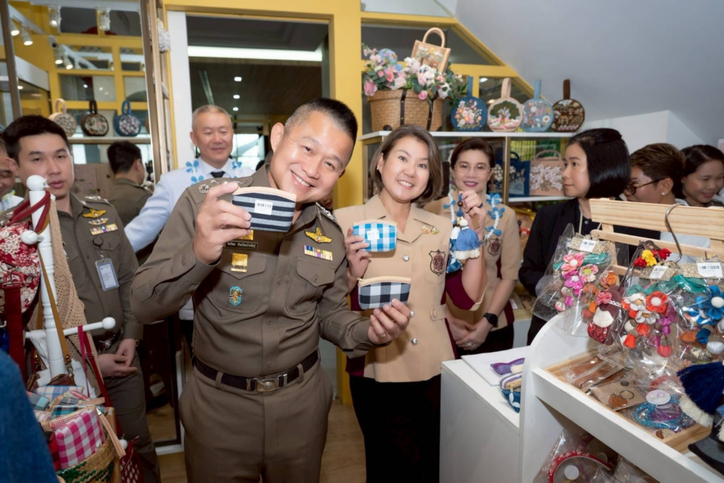จากนั้นได้ตรวจเยี่ยมร้านปันรักษ์ ร้านค้าของสมาคมแม่บ้านตำรวจ ที่บริเวณชั้น 2 อาคารมหาภูมิพลราชานุสรณ์ 88 พรรษา โรงพยาบาลตำรวจ ซึ่งมีสินค้าจากฝีมือของแม่บ้านตำรวจทั่วประเทศมาวางจำหน่ายให้ผู้สนใจ