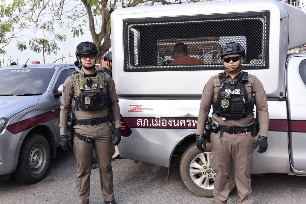วันนี้ (20 เมษายน 2569) เวลา 14.30 น. พล.ต.ท.ไตรรงค์ ผิวพรรณ รองจเรตำรวจแห่งชาติ ในฐานะโฆษกสำนักงานตำรวจแห่งชาติ เดินทางไปตรวจเยี่ยมตำรวจภูธรจังหวัดนครพนม ณ สภ.เมืองนครพนม โดยมี พล.ต.ต.ณัฐนนท์ ประชุม รองผู้บัญชาการตำรวจภูธรภาค 4, พล.ต.ต.ศักดิ์ชาย สาดมะเริง ผู้บังคับการตำรวจภูธรจังหวัดนครพนม, รองผู้บังคับการตำรวจภูธรจังหวัดนครพนม, พ.ต.อ.ธนชิต สุขพัฒนานรากุล ผู้กำกับการ สภ.เมืองนครพนม, และข้าราชการตำรวจในสังกัดให้การต้อนรับ โดยรองจเรตำรวจแห่งชาติได้โอวาทการปฏิบัติหน้าที่ และรับชมการฝึกยุทธวิธี โดยกำชับให้มีการฝึกยุทธวิธีในทุกพื้นที่อย่างต่อเนื่อง โดยเฉพาะชุด Six Man Team เพื่อการดูแลความปลอดภัยให้กับพี่น้องประชาชนอย่างมีประสิทธิภาพ