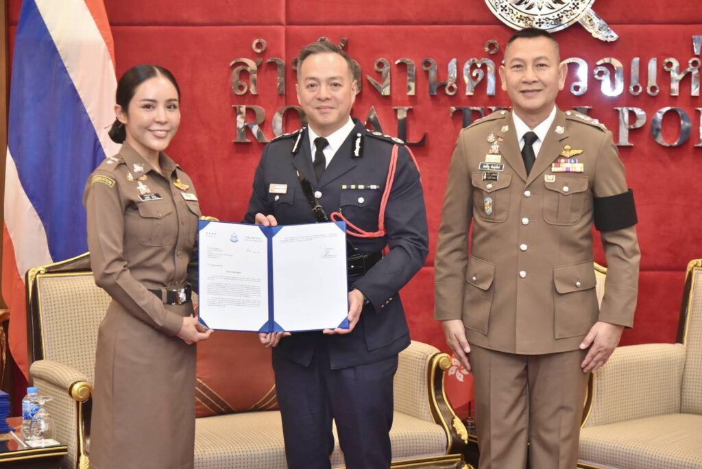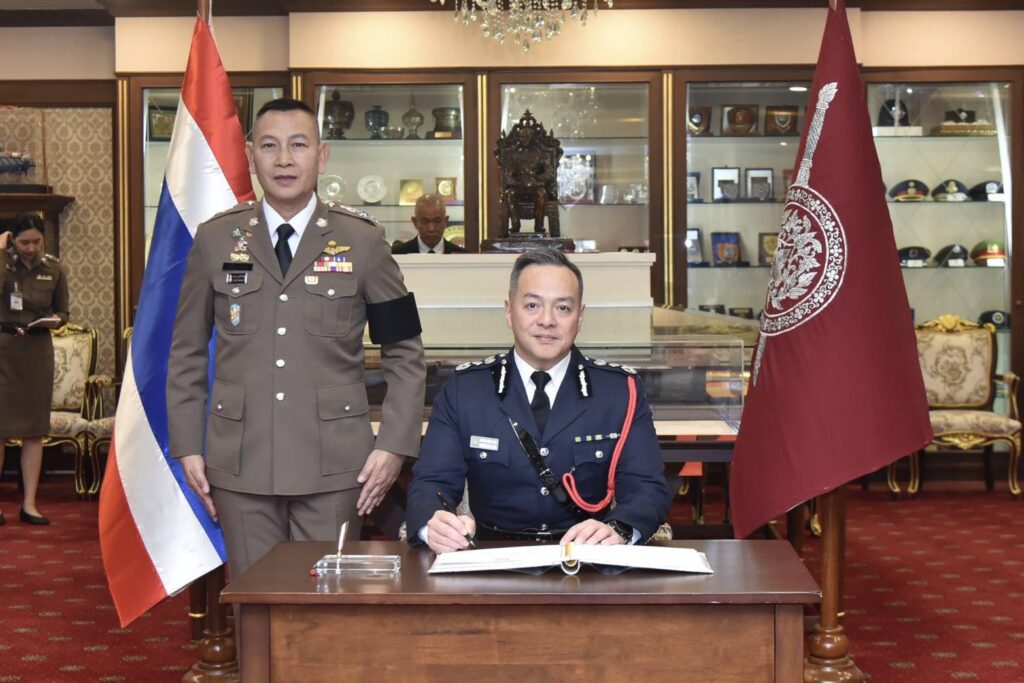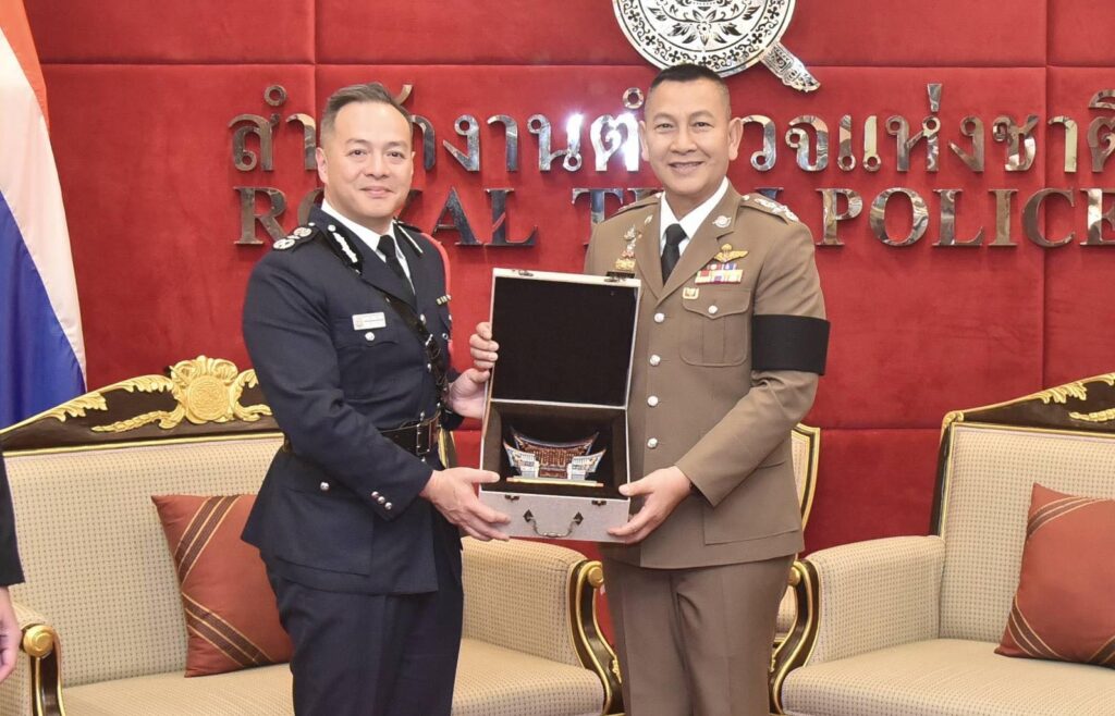 วันนี้(4 ก.พ.69) เวลา 14.30 น. ที่ห้องพรหมนอก ชั้น 2 อาคาร 1 สำนักงานตำรวจแห่งชาติ พล.ต.อ.กิตติ์รัฐ พันธุ์เพ็ชร์ ผู้บัญชาการตำรวจแห่งชาติ(ผบ.ตร.) ให้การต้อนรับ นายโจว หยัดหมิง โจ(CHOW Yat-Ming Joe) ผู้บัญชาการตำรวจฮ่องกงแห่งสาธารณรัฐประชาชนจีนและคณะฯ ที่เข้าพบเพื่อเยี่ยมคารวะและหารือข้อราชการ โดยมี พล.ต.อ.สำราญ นวลมา รอง ผบ.ตร. พร้อมผู้มีส่วนเกี่ยวข้องร่วมให้การต้อนรับ จากนั้นได้เยี่ยมชมศูนย์บริหารเหตุการณ์แก๊งคอลเซ็นเตอร์และค้ามนุษย์นานาชาติ(ศกค.) ชั้น 7 อาคารศูนย์ฝึกอบรมพัฒนาบุคลากรและสวัสดิการ สำนักงานตำรวจแห่งชาติ