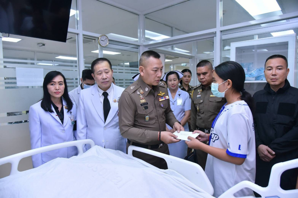 วันนี้ (18 มีนาคม 2569) 09.00 น. พล.ต.อ.กิตติ์รัฐ พันธุ์เพ็ชร์ ผู้บัญชาการตำรวจแห่งชาติ (ผบ.ตร.) เข้าเยี่ยมอาการของ ด.ต.อุดม อ้วนผุย ผบ.หมู่ กก.ตชด.22 ซึ่งได้รับบาดเจ็บจากการปฏิบัติหน้าที่ชายแดนไทย-กัมพูชา ณ ฐานปฏิบัติการต้นไทร จ.ศรีสะเกษ โดนสะเก็ดระเบิดเข้าบริเวณศีรษะ ขณะนี้ยังคงรักษาตัว ณ ห้องไอซียู ศัลยกรรมประสาท โรงพยาบาลตำรวจ โดยได้พูดคุยให้กำลังใจและมอบเงินช่วยเหลือให้กับครอบครัวของ ด.ต.อุดมฯ ยืนยันสำนักงานตำรวจแห่งชาติไม่ทอดทิ้ง จะดูแลรักษาพร้อมดูแลสิทธิและสวัสดิการอย่างเต็มที่