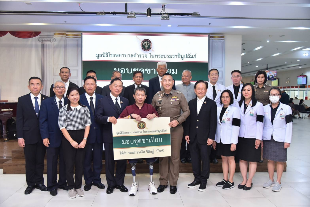 จากนั้นเวลา 09.30 น. พล.ต.อ.กิตติ์รัฐ พันธุ์เพ็ชร์ ผบ.ตร. ในฐานะประธานมูลนิธิโรงพยาบาลตำรวจ ในพระบรมราชินูปถัมภ์ ได้เป็นประธานพิธีมอบขาเทียมให้กับ พล.ต.ท.วิศิษฏ์ บัวศรี อดีตข้าราชการตำรวจชุด EOD กองกำกับการตำรวจตระเวนชายแดนที่ 43 ที่ได้รับบาดเจ็บสาหัสจากการปฏิบัติหน้าที่เหตุลอบวางระเบิดขณะลาดตระเวนเส้นทางรถไฟในภาคใต้ เมื่อเดือนกุมภาพันธ์ 2565 จนต้องตัดขา โดยมี พล.ต.อ.อดุลย์ แสงสิงแก้ว ประธานกรรมการมูลนิธิ พล.ต.อ.อดุลย์ แสงสิงแก้ว และ พล.ต.อ.วินัย ทองสอง นายกสมาคมตำรวจ ร่วมพิธี