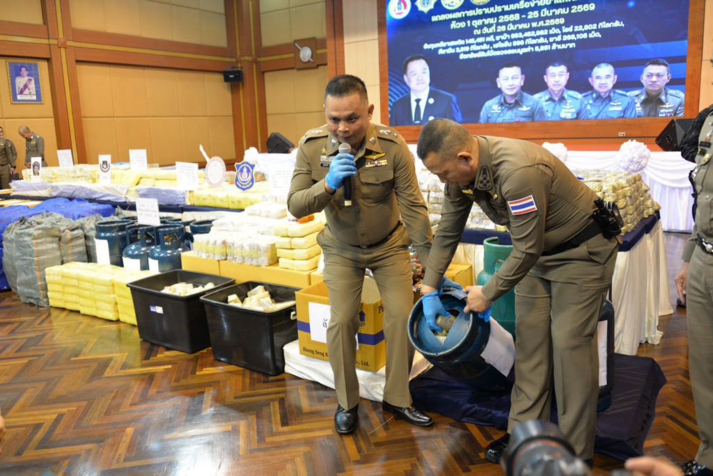 สำนักงานตำรวจแห่งชาติได้ดำเนินการบูรณาการกำลังร่วมกับหน่วยงานที่เกี่ยวข้องอย่างเข้มข้น ระหว่างวันที่ 1 ตุลาคม 2568 – 25 มีนาคม 2569 เพื่อขับเคลื่อนมาตรการปราบปรามยาเสพติดในทุกมิติ ส่งผลให้สามารถจับกุมคดีเกี่ยวกับยาเสพติดได้จำนวน 145,541 คดี พร้อมทั้งตรวจยึดของกลางจำนวนมาก ได้แก่ ยาบ้า 693,452,982 เม็ด, ไอซ์ 22,802.39 กิโลกรัม, เฮโรอีน 596.92 กิโลกรัม, คีตามีน 3,819.07 กิโลกรัม, ยาอี 268,105 เม็ด, และอายัดทรัพย์สินที่เกี่ยวเนื่องกับการกระทำความผิดรวมมูลค่ากว่า 5,851 ล้านบาท