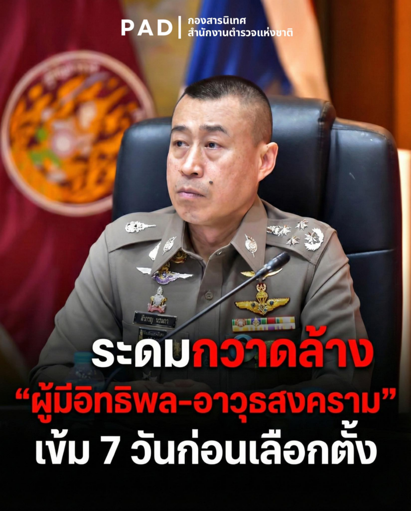 ตำรวจแห่งชาติสั่งลุย! ระดมกวาดล้าง “ผู้มีอิทธิพล-อาวุธสงคราม” เข้ม 7 วันก่อนเลือกตั้ง