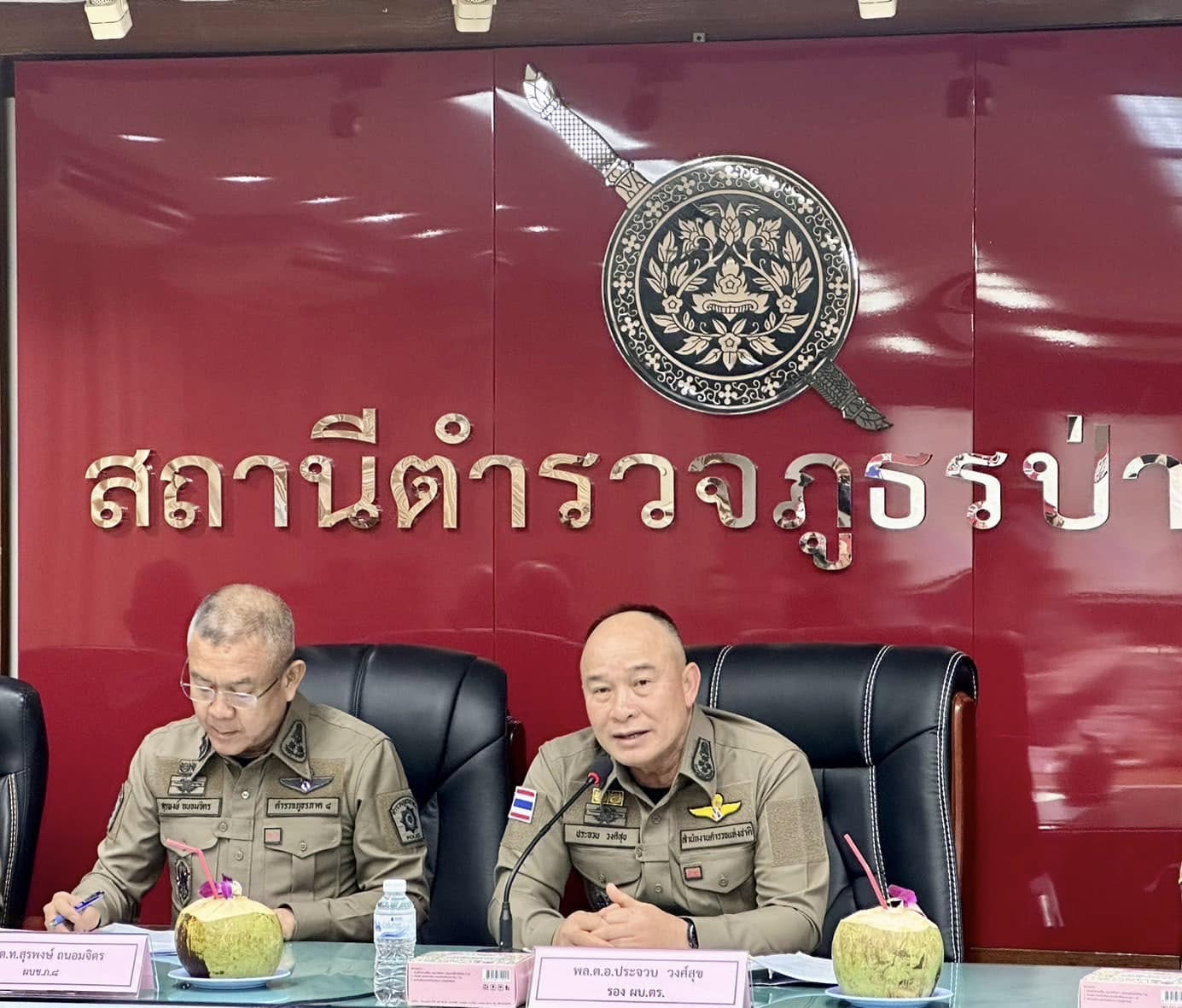 วันนี้ (29 ธันวาคม 2567) พล.ต.อ.ประจวบ วงศ์สุข รองผู้บัญชาการตำรวจแห่งชาติ (รอง ผบ.ตร.) ลงพื้นที่จังหวัดภูเก็ต เป็นประธานการประชุมกำชับและติดตามการปฏิบัติตามมาตรการป้องกันปราบปรามอาชญากรรม การรักษาความสงบเรียบร้อย การบังคับใช้กฎหมาย และอำนวยความสะดวกด้านการจราจรในช่วงเทศกาลปีใหม่ 2568 โดยมี พล.ต.ท.สุรพงษ์ ถนอมจิตร ผบช.ภ.8 , พล.ต.ต.วิมล พิทักษ์บูรพา รอง ผบช.ภ.8 , พล.ต.ต.ศรัญญู ชำนาญราช รอง ผบช.ภ.8 , พล.ต.ต.รุ่งโรจน์ ฐากูรปุณยสิริ รอง ผบช.ตชด. , พล.ต.ต.สินเลิศ สุขุม , ผบก.ภ.จว.ภูเก็ต , พล.ต.ต.ทรงโปรด สิริสุขะ ผบก.ตม.6 , พ.ต.อ.เฉลิมชัย เหิรสวัสดิ์ ผกก.สภ.ป่าตอง , พ.ต.อ.เกรียงไกร อาริยะยิ่ง ผกก.ตม.จว.ภูเก็ต และ พ.ต.อ.พิสิษฐ์ สวัสดิ์ถาวร ผกก.2 บก.ทท.3 พร้อมด้วย นายธรรมรงค์ ช่วยอักษร ปลัดอำเภอกระทู้ , นายษณกร กี่สิ้น รองนายกเทศมนตรีเมืองป่าตอง ผู้แทนภาคเอกชน และเจ้าหน้าที่ที่เกี่ยวข้อง เข้าร่วมประชุม ณ สภ.ป่าตอง จ.ภูเก็ต