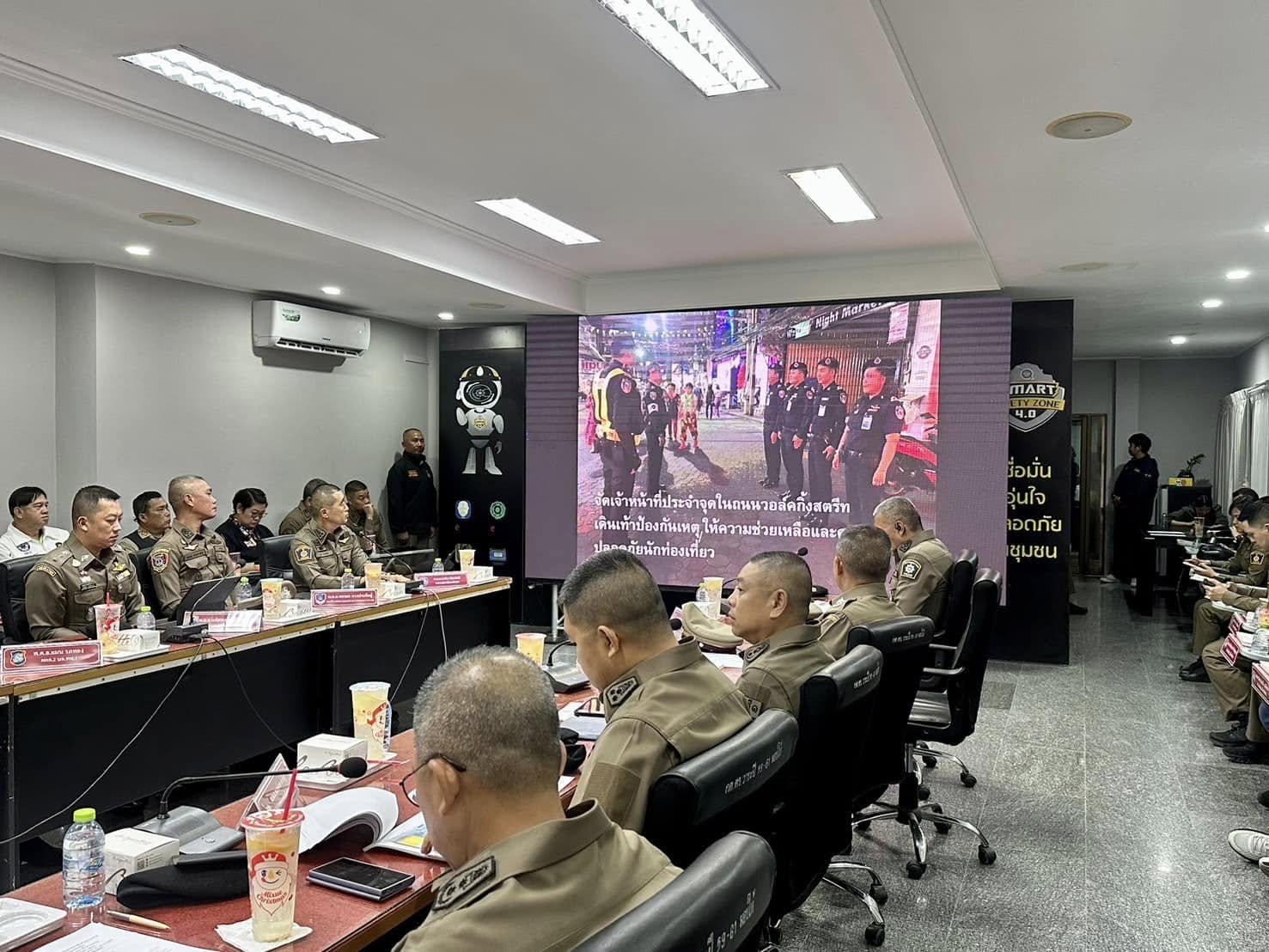 จากนั้น พล.ต.อ.ประจวบฯ ได้ลงพื้นที่ตรวจติดตามการปฏิบัติงานป้องกันปราบปรามอาชญากรรม ดูแลความปลอดภัยนักท่องเที่ยว ร่วมกับฝ่ายปกครองอำเภอเมืองพัทยา กรมเจ้าท่า หน่วยกู้ภัยสว่างบริบูรณ์ พัทยา กต.ตร.สภ.เมืองพัทยา อส.ตร.สภ.เมืองพัทยา และภาคเอกชนในพื้นที่ ประชาสัมพันธ์สร้างการตระหนักรู้ในมาตรการป้องกันปราบปรามและระมัดระวังตนเองจากอาชญากรรม ตลอดจนข้อห่วงใยแนะนำประชาชนและนักท่องเที่ยว สร้างการมีส่วนร่วมของภาครัฐและเอกชน ในการบริหารจัดการยกระดับความปลอดภัยและการอำนวยความสะดวกด้านการจราจรในพื้นที่ อย่างมีประสิทธิภาพ เพื่อสร้างความเชื่อมั่นให้แก่ประชาชนและนักท่องเที่ยวในพื้นที่ย่านถนนคนเดินพัทยา (Pattaya Walking Street)