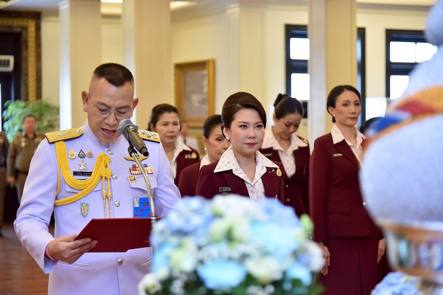 พล.ต.อ.กิตติ์รัฐ พันธุ์เพ็ชร์ ผู้บัญชาการตำรวจแห่งชาติ (ผบ.ตร.) เป็นประธานกิจกรรมเฉลิมพระเกียรติสมเด็จพระนางเจ้าสิริกิติ์ พระบรมราชินีนาถ พระบรมราชชนนีพันปีหลวง เนื่องในโอกาสเฉลิมพระชนมพรรษา 12 สิงหาคม 2568 ณ อาคาร 1 สำนักงานตำรวจแห่งชาติ พร้อมด้วย คุณกนกวรรณ พันธุ์เพ็ชร์ นายกสมาคมแม่บ้านตำรวจ , รอง ผบ.ตร. , จเรตำรวจแห่งชาติ (จตช.) , ที่ปรึกษาพิเศษ ตร. , ผู้ช่วย ผบ.ตร. , รอง จตช. , คณะสมาคมแม่บ้านตำรวจ และข้าราชการตำรวจ เข้าร่วมพิธี