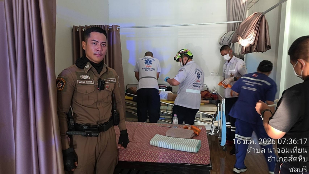 เหตุการณ์ดังกล่าวเกิดขึ้นเมื่อวันที่ 16 มีนาคม 2569 เวลา 07.30 น. โดย “ส.ต.ท.พัชรพล คงคากุล” ผบ.หมู่ (ฝ่ายจราจร) สภ.นาจอมเทียน ได้รับแจ้งจากประชาชนว่าภายในร้านนวดแห่งหนึ่งตั้งอยู่บริเวณบ้านอำเภอ ถนนสุขุมวิท ต.นาจอมเทียน อ.สัตหีบ จ.ชลบุรี มีผู้ป่วยติดเตียงเกิดอาการหมดสติและไม่มีชีพจร จึงรีบเดินทางไปตรวจสอบทันที พร้อมเข้าช่วยเหลือผู้ป่วยด้วยการปั๊มหัวใจ (CPR) อย่างเร่งด่วน ก่อนประสานรถพยาบาลรับตัวนำส่งโรงพยาบาลเพื่อรับการรักษาต่อไป