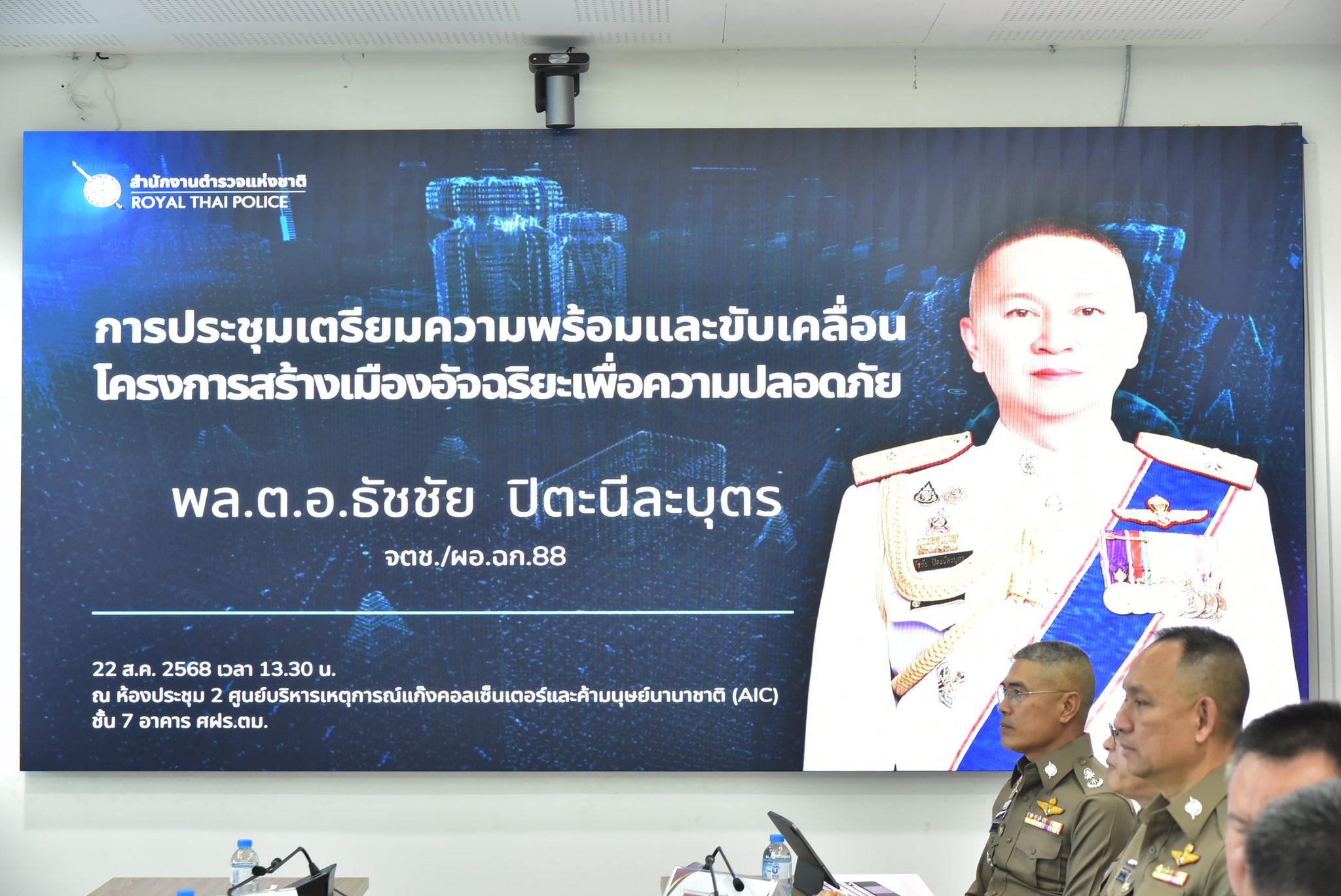 พล.ต.อ.ธัชชัย ปิตะนีละบุตร จตช. เป็นประธานการประชุมเตรียมความพร้อมและขับเคลื่อนโครงการสร้างเมืองอัจฉริยะ ณ ศูนย์บริหารเหตุการณ์แก๊งคอลเซ็นเตอร์และค้ามนุษย์นานาชาติ ชั้น 7 อาคารศูนย์ฝึกอบรมพัฒนาบุคลากรและสวัสดิการ สำนักงานตำรวจแห่งชาติ